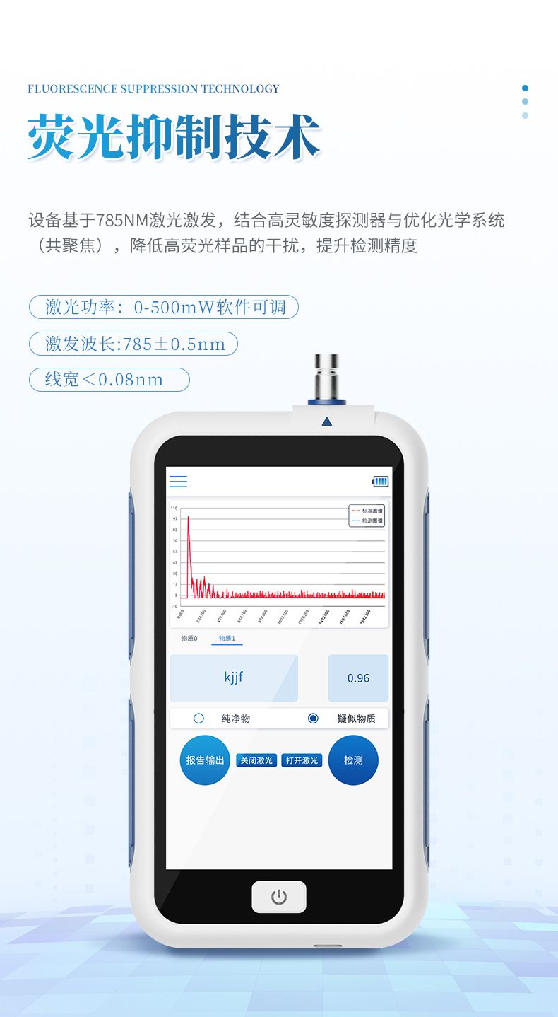 手持式拉曼光譜儀是一種便攜式微型共焦拉曼光譜檢測設備,基于拉曼散射原理,通過激光激發樣品分子振動/轉動能級躍遷,獲取特征光譜信息,快速識別物質成分,專為快速、無損、高靈敏度的物質分析設計。