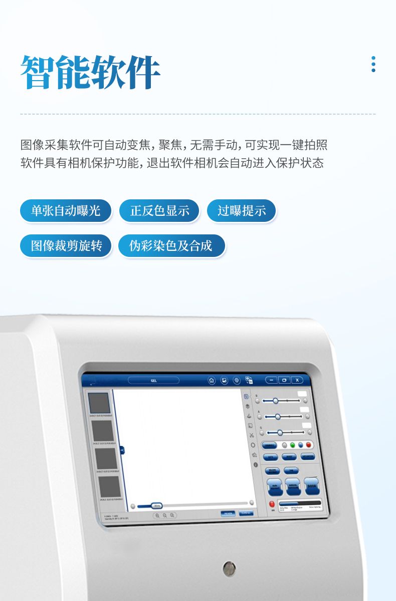 圖像采集軟件具有單張自動曝光功能,根據樣品發光強度自動選擇合適的曝光 時間。