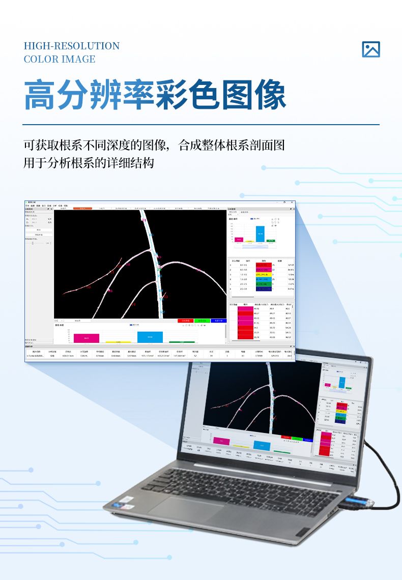 平面原位根系監測系統是一款土壤根系原位平面多層次圖像監測儀,可獲取土壤、根系側面剖面圖像,監測土壤中活體根系的生長狀態,可獲取高分辨率圖像用于分析根系的詳細結構。