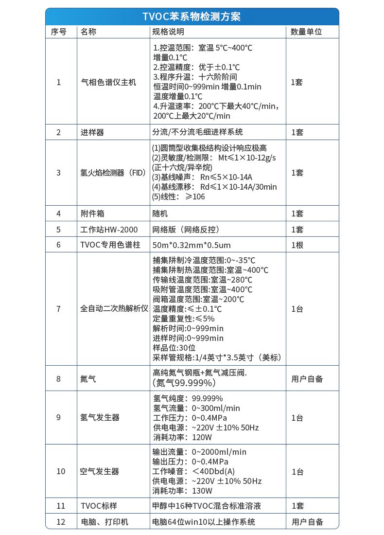 | 檢測器 | 氫火焰檢測器(FID) (1)圓筒型收集極結構設計響應極高 (2)靈敏度/檢測限: Mt≤1×10-12g/s(正十六烷/異辛烷) (3)基線噪聲: Rn≤5×10-14A (4)基線漂移: Rd≤1×10-14A/30min (5)線性: ≥106 | 1套 | ||
