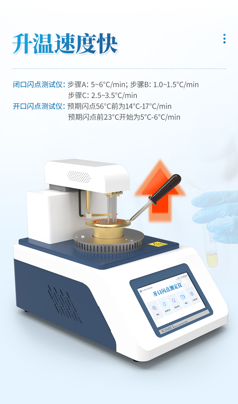 升溫速度 預(yù)期閃點(diǎn)56℃前為14℃-17℃/min;預(yù)期閃點(diǎn)前23℃開始為5℃-6℃/min.